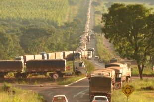 No sul de Mato Grosso, os caminhões congestionam o tráfego na BR-364, no entreposto da América Latina Logística (ALL), porque não conseguem descarregar para a carga seguir de trem. Segundo a empresa, a capacidade é de 1.200 descargas por dia, mas o volume de caminhões é maior do que isso. E como não há espaço suficiente no pátio de estacionamento da ALL, os caminhões acabam ficando na pista.